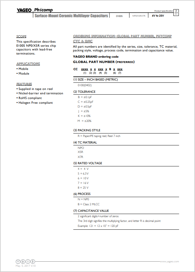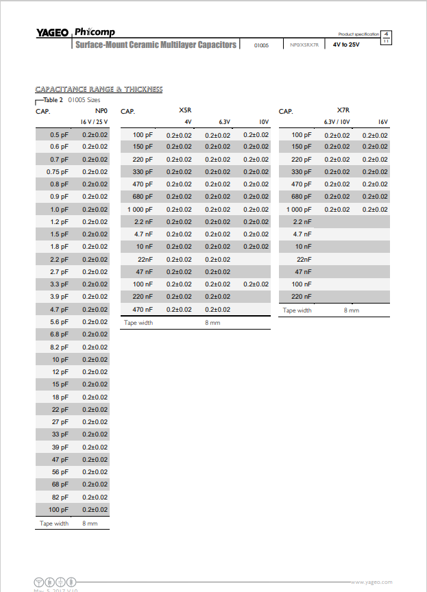 yageo(國(guó)巨)電容規(guī)格書(shū)大致預(yù)覽圖如下