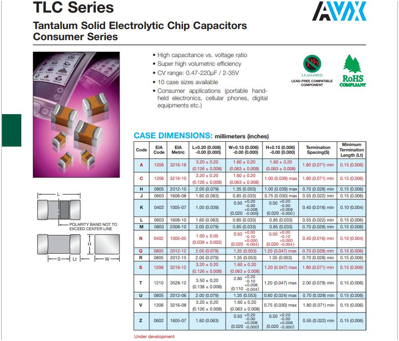 avx貼片電容型號尺寸詳解圖如下