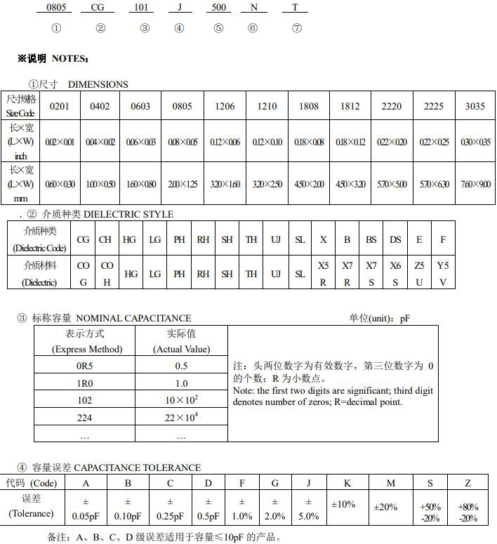 風華貼片電容型號規(guī)格表示圖如下