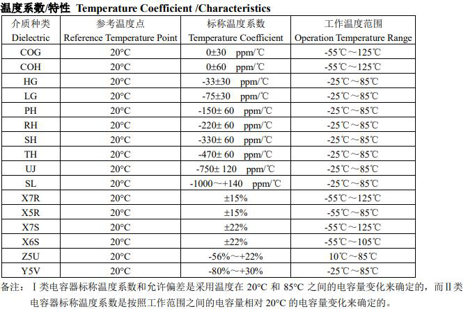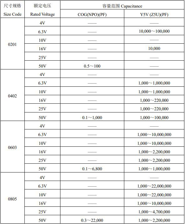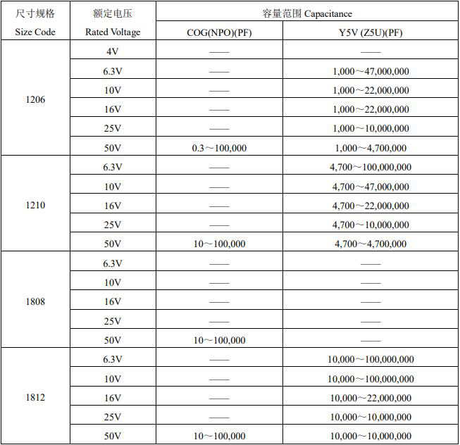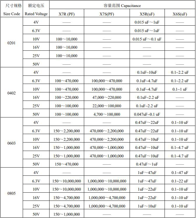 風華貼片電容參數(shù)選購圖表如下
