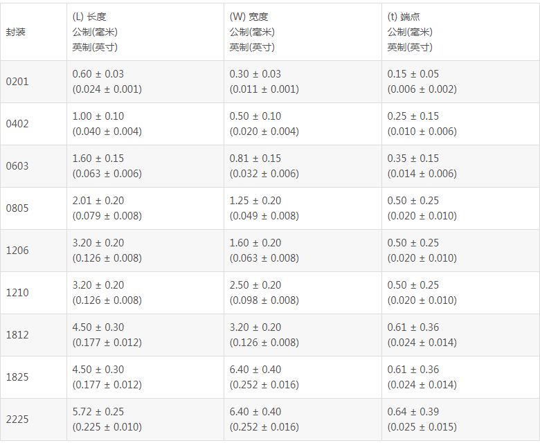 尺寸:例如0402表示長(zhǎng)度為0.04英寸、寬度為0.02英寸(或1005表示1.0mm x 0.5mm)。