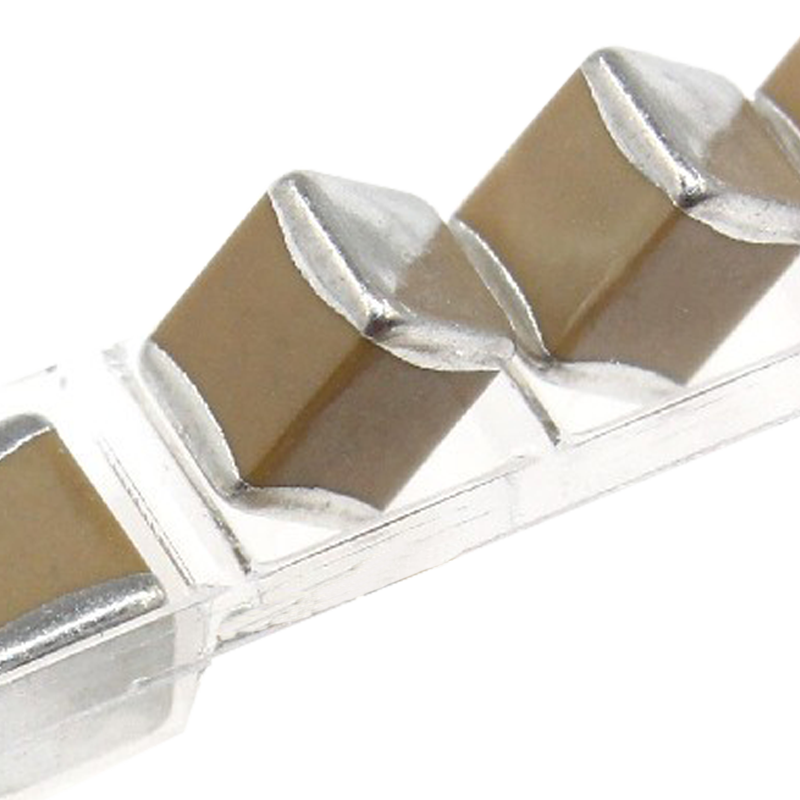 編帶粘膠顏色:國(guó)巨貼片電容的編帶粘膠通常為黃色,這是一個(gè)明顯的識(shí)別特征。如果編帶粘膠顏色不符,很可能是仿制品。